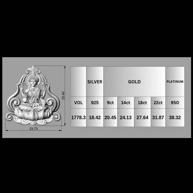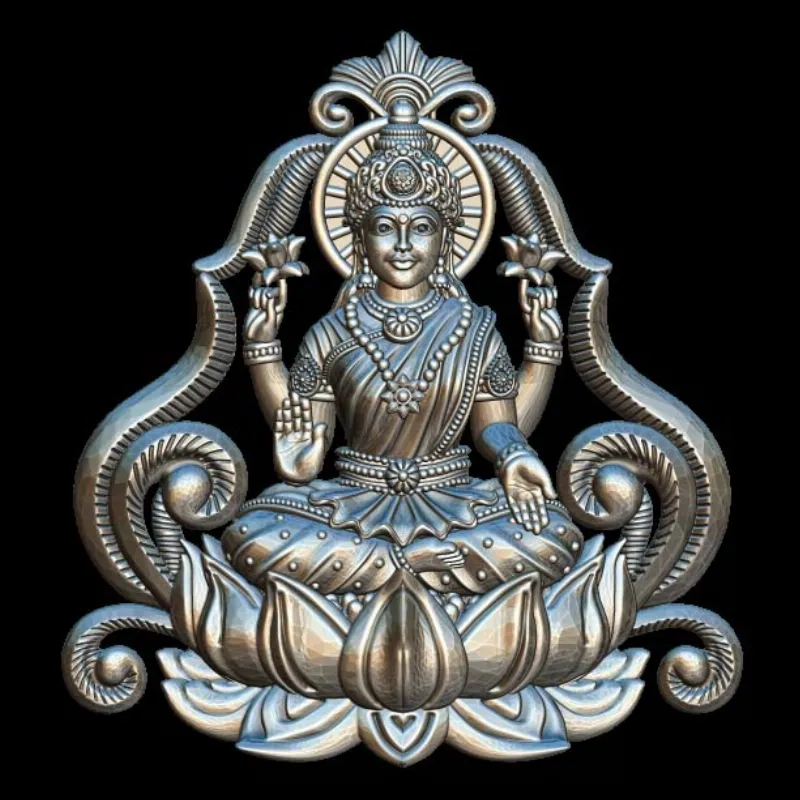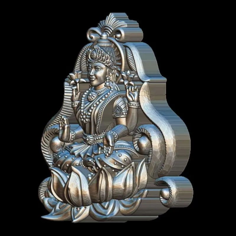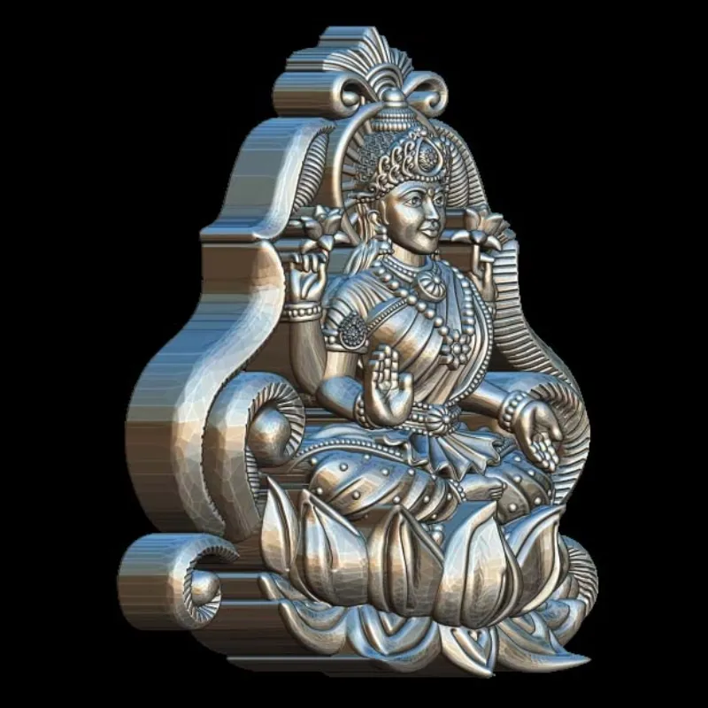 This meticulously designed 3D Model Of Goddess Lakshmi Ji will add the divine presence of Goddess Lakshmi to your home or crafting projects. This model, ideal for 3D printing, CNC carving, and jewelry production, represents the grace and beauty of the Hindu goddess of wealth, prosperity, and fortune.