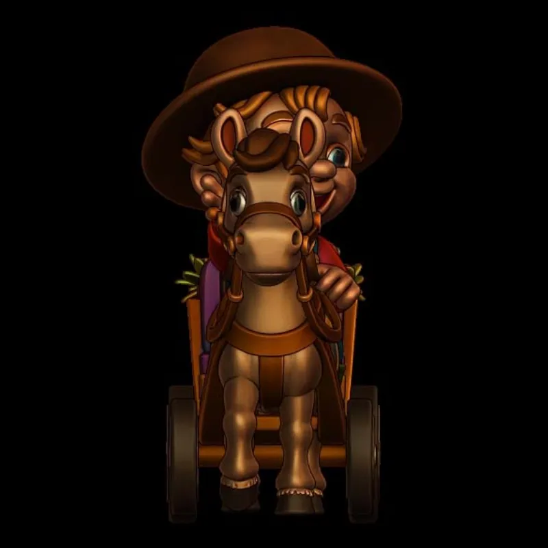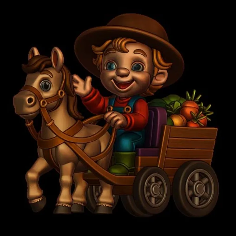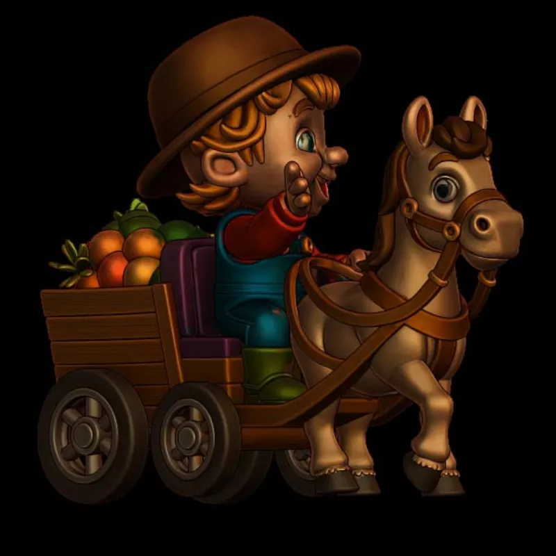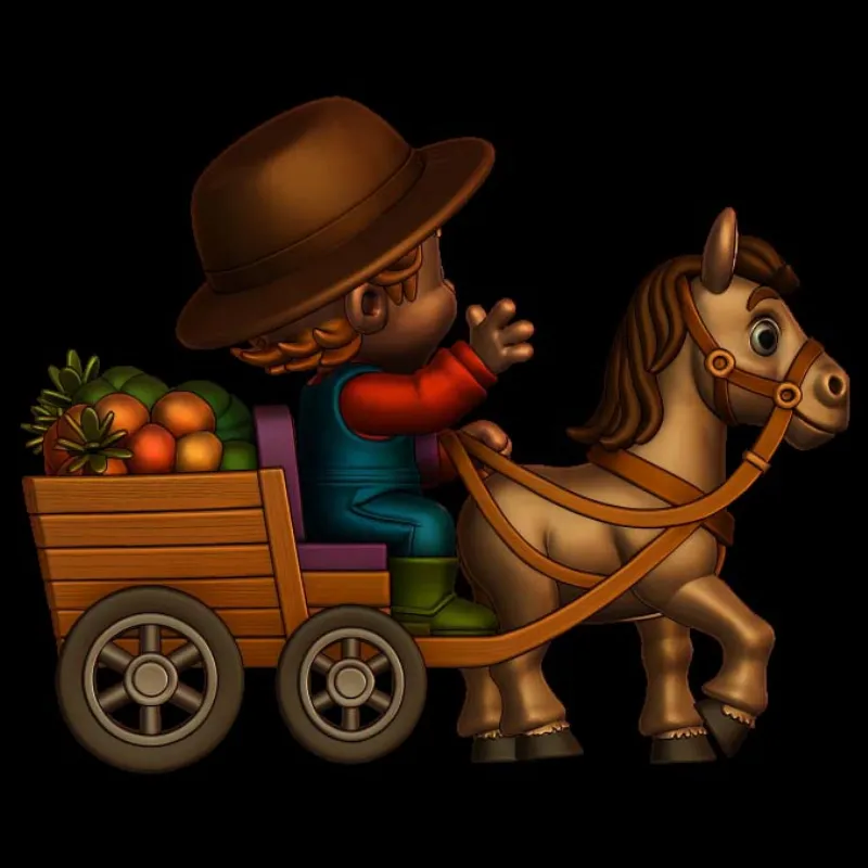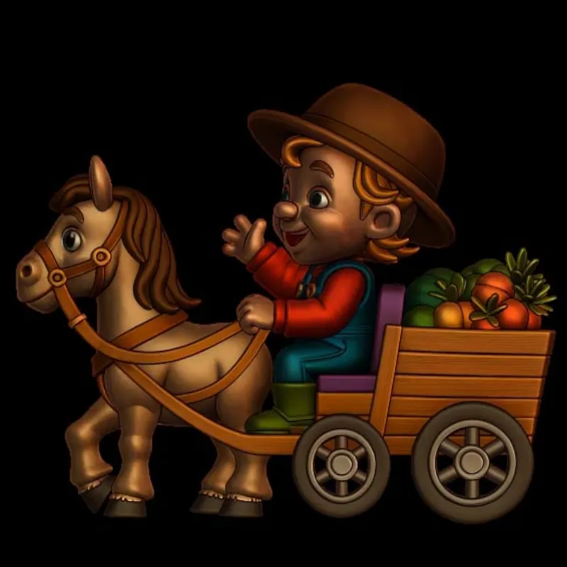 This charming 3D Print Model Young Farmer with Horse Drawn Cart can add rustic charm to your creations. This model is ideal for incorporating a humorous element into jewelry designs, intricate carpentry projects, or as a stand-alone ornamental piece.
