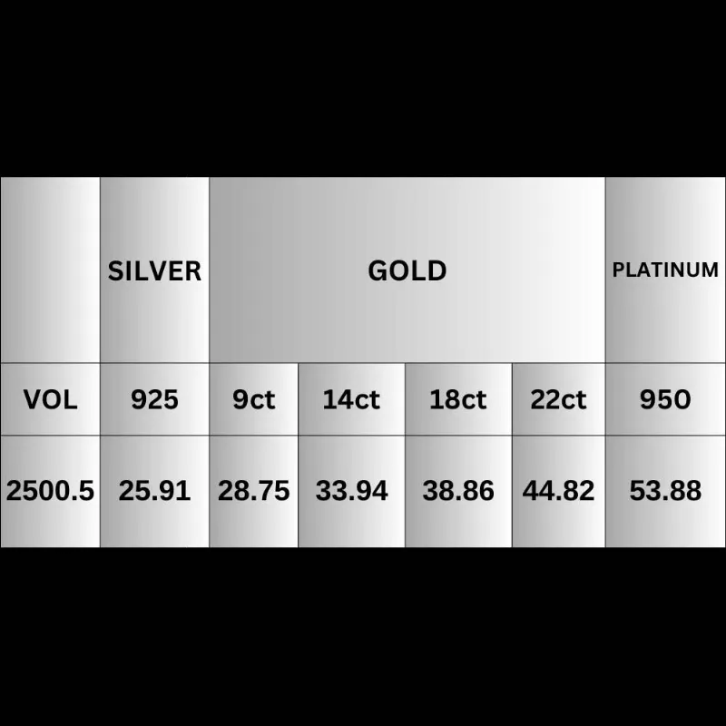 - Specifications: Size: 26.00 x 40.00, Volume: 2500.5, Estimated Gold Weight: 44.82