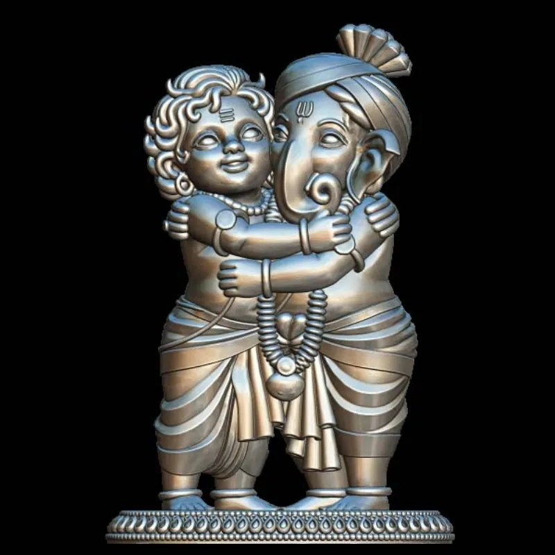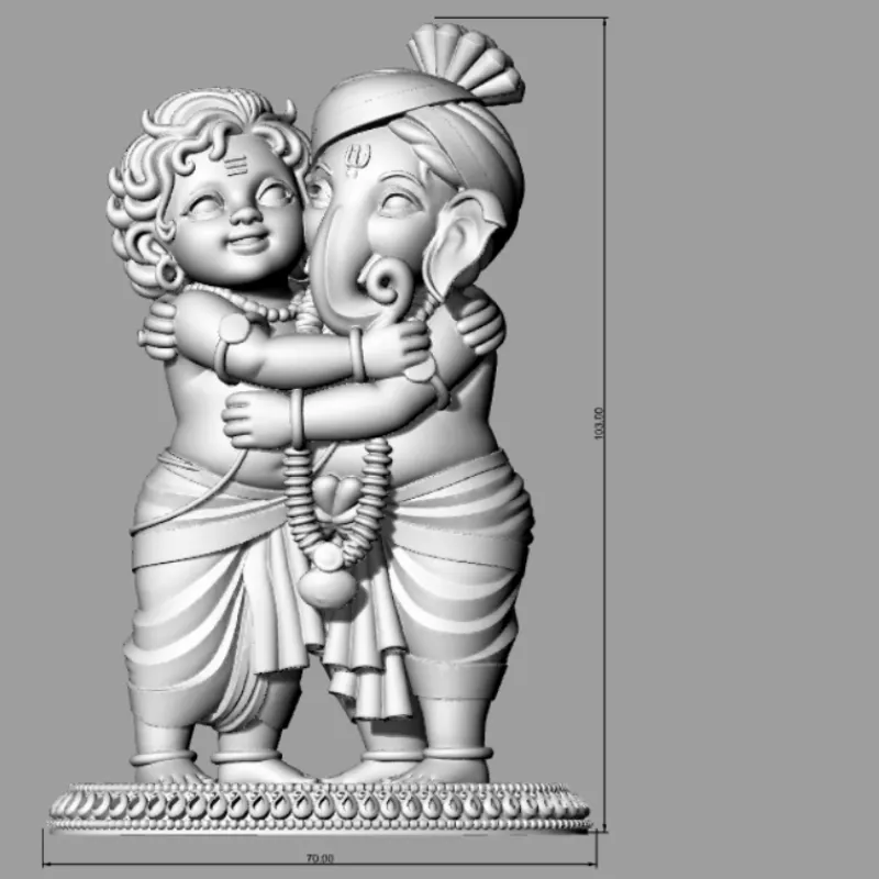 Celebrate divine bonds with the intricately designed Ganesha and Murugan 3D & 2D Model Files. This model captures the essence of their affectionate relationship, ideal for crafting spiritual art or unique jewelry pieces.