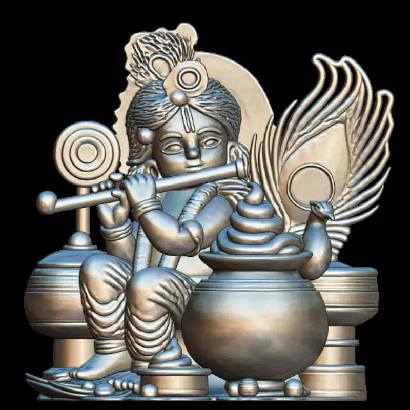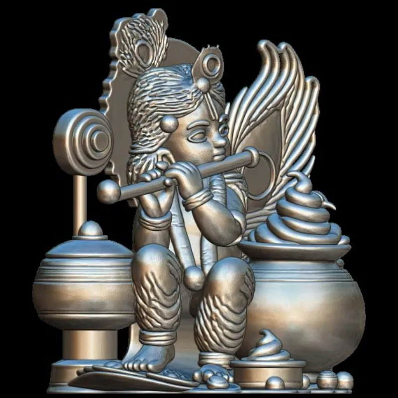 This one of a kind Krishna 3D Model for Jewelry, meticulously developed for 3D printing, allows you to express your creativity. This device has excellent adaptability, whether youre creating bespoke jewelry items such as pendants, earrings, and rings, or exploring the creativity of woodworking through CNC carving designs, decorative inlays, or mold production.