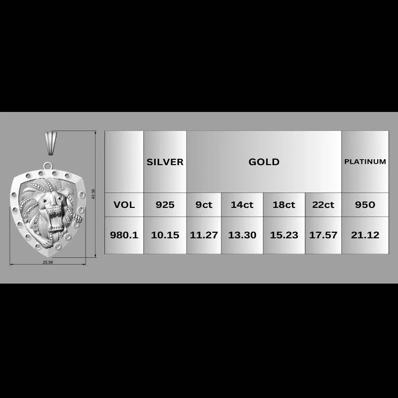 - Detailed Specifications: This 3D model measures 43.36 x 25.96 units, with a volume of 980.1. If cast in gold, the estimated weight is 17.57.