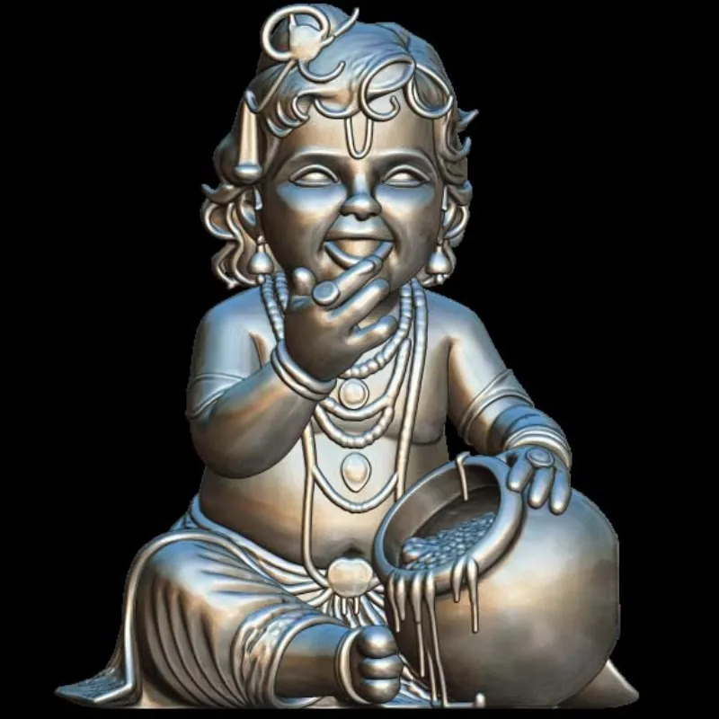 Our Makhan Chor Gopal 3D Print Model brings Krishnas lighthearted charm to life! This meticulously produced design portrays the charm of little Krishna as he enjoys his stolen butter. This model is ideal for a number of 3D printing applications and may lend a spiritual and artistic touch to any project.