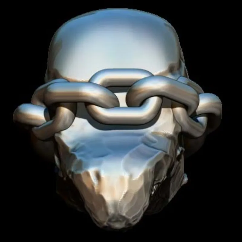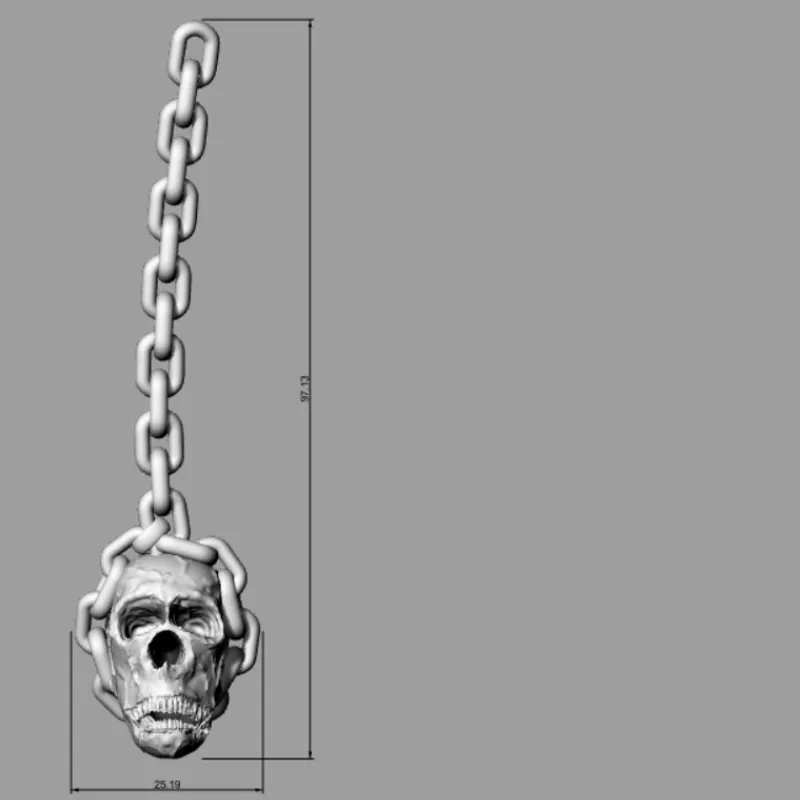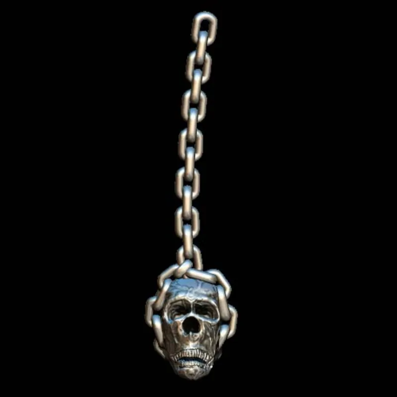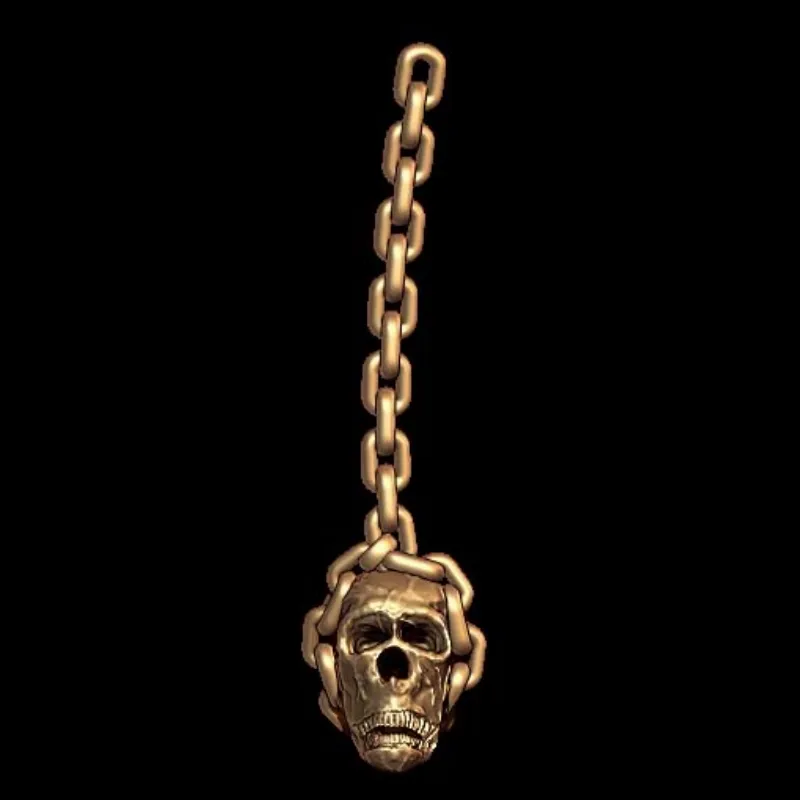 The Skull Chain Loccet 3D Model for Printing is suitable for a range of 3D printing purposes. This intricately carved skull, tied by chains, makes a strong statement as a pendant, earring, or CNC carving inlay.