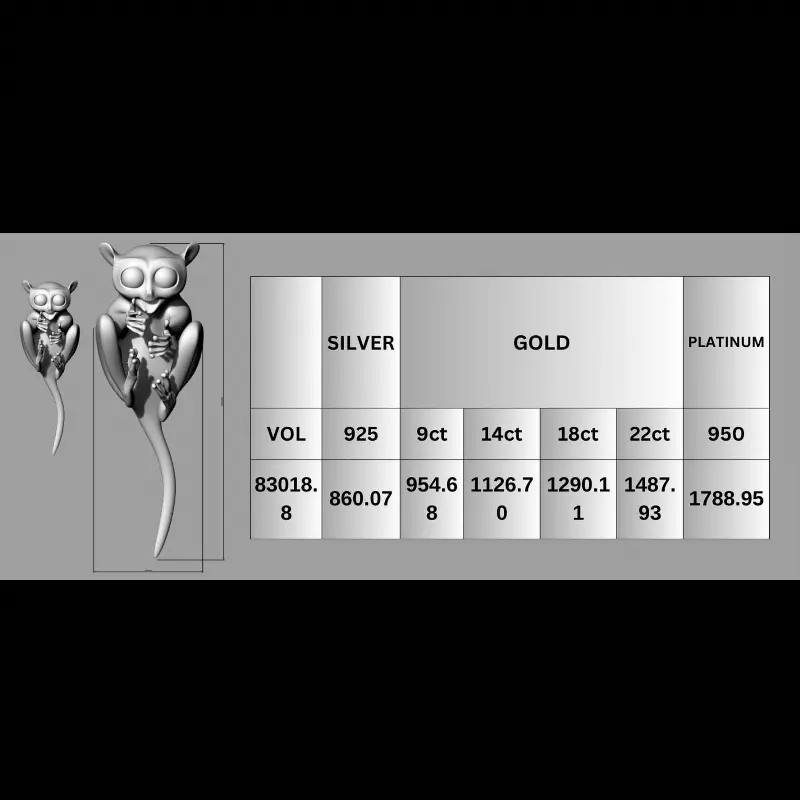 This detailed Tarsier Jewelry 3D Model STL & 3DM will let you bring the magical world of the tarsier to life. This model, designed for 3D printing, is ideal for producing one-of-a-kind jewelry items, adding whimsy to woodworking projects, or generating eye-catching decorative elements.